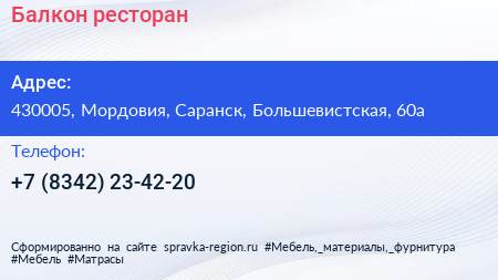 Балкон, ресторан по адресу 430005, Мордовия, Саранск, Большевистская, 60а в дальнейшем Организация, размещена в следующих категориях: