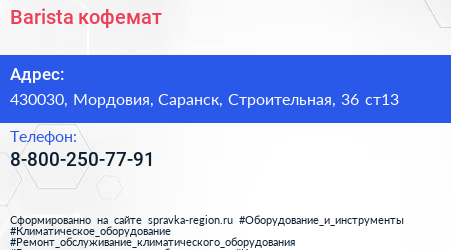 Barista, кофемат по адресу 430030, Мордовия, Саранск, Строительная, 36 ст13 в дальнейшем Организация, размещена в следующих категориях:
