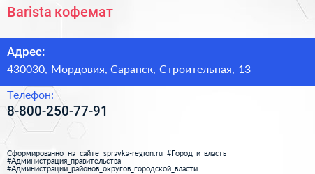 Barista, кофемат по адресу 430030, Мордовия, Саранск, Строительная, 13 в дальнейшем Организация, размещена в следующих категориях: