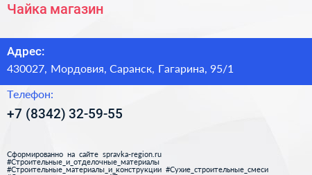 Чайка, магазин по адресу 430027, Мордовия, Саранск, Гагарина, 95/1 в дальнейшем Организация, размещена в следующих категориях: