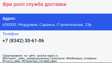 Фри ролл, служба доставки по адресу 430030, Мордовия, Саранск, Строительная, 13в в дальнейшем Организация, размещена в следующих категориях: