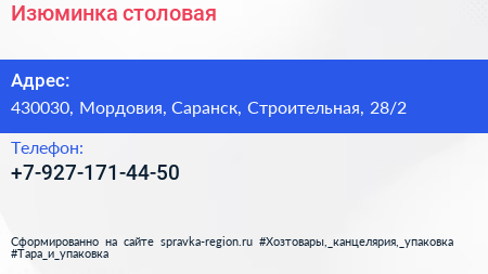 Изюминка, столовая по адресу 430030, Мордовия, Саранск, Строительная, 28/2 в дальнейшем Организация, размещена в следующих категориях: