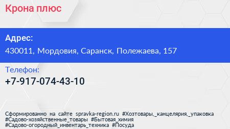 Крона плюс по адресу 430011, Мордовия, Саранск, Полежаева, 157 в дальнейшем Организация, размещена в следующих категориях: