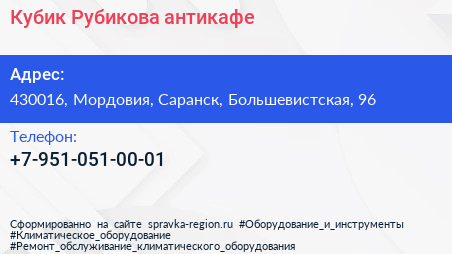 Кубик Рубикова, антикафе по адресу 430016, Мордовия, Саранск, Большевистская, 96 в дальнейшем Организация, размещена в следующих категориях: