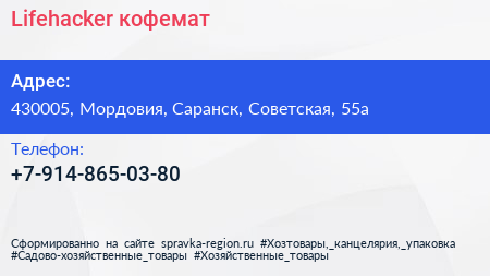 Lifehacker, кофемат по адресу 430005, Мордовия, Саранск, Советская, 55а в дальнейшем Организация, размещена в следующих категориях: