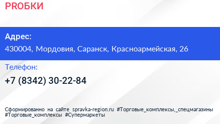 #PROБКИ по адресу 430004, Мордовия, Саранск, Красноармейская, 26 в дальнейшем Организация, размещена в следующих категориях: