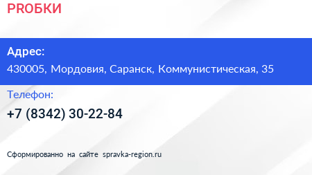 #PROБКИ по адресу 430005, Мордовия, Саранск, Коммунистическая, 35 в дальнейшем Организация, размещена в следующих категориях:
