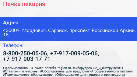 Печка, пекарня по адресу 430009, Мордовия, Саранск, проспект Российской Армии, 18 в дальнейшем Организация, размещена в следующих категориях: