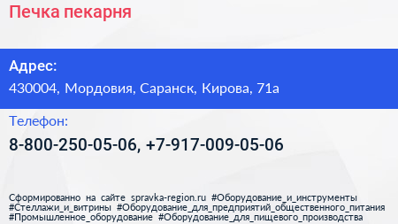 Печка, пекарня по адресу 430004, Мордовия, Саранск, Кирова, 71а в дальнейшем Организация, размещена в следующих категориях: