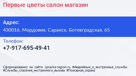 Первые цветы, салон-магазин по адресу 430016, Мордовия, Саранск, Ботевградская, 65 в дальнейшем Организация, размещена в следующих категориях: