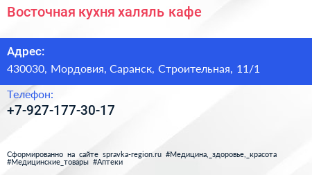 Восточная кухня, халяль-кафе по адресу 430030, Мордовия, Саранск, Строительная, 11/1 в дальнейшем Организация, размещена в следующих категориях: