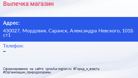 Выпечка, магазин по адресу 430027, Мордовия, Саранск, Александра Невского, 101Б ст1 в дальнейшем Организация, размещена в следующих категориях: