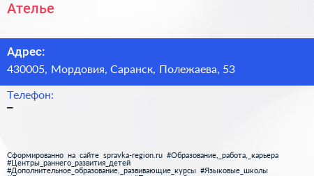 Ателье по адресу 430005, Мордовия, Саранск, Полежаева, 53 в дальнейшем Организация, размещена в следующих категориях: