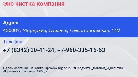 Эко-чистка, компания по адресу 430009, Мордовия, Саранск, Севастопольская, 119 в дальнейшем Организация, размещена в следующих категориях: