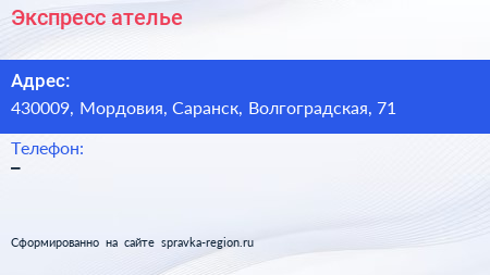 Экспресс-ателье по адресу 430009, Мордовия, Саранск, Волгоградская, 71 в дальнейшем Организация, размещена в следующих категориях: