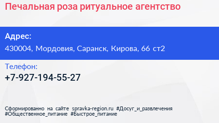 Печальная роза, ритуальное агентство по адресу 430004, Мордовия, Саранск, Кирова, 66 ст2 в дальнейшем Организация, размещена в следующих категориях:
