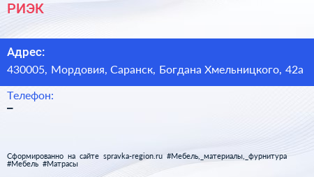 РИЭК по адресу 430005, Мордовия, Саранск, Богдана Хмельницкого, 42а в дальнейшем Организация, размещена в следующих категориях: