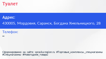 Туалет по адресу 430005, Мордовия, Саранск, Богдана Хмельницкого, 28 в дальнейшем Организация, размещена в следующих категориях: