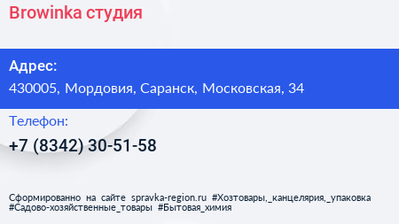 Browinka, студия по адресу 430005, Мордовия, Саранск, Московская, 34 в дальнейшем Организация, размещена в следующих категориях: