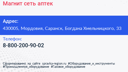 Магнит, сеть аптек по адресу 430005, Мордовия, Саранск, Богдана Хмельницкого, 33 в дальнейшем Организация, размещена в следующих категориях: