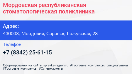 Мордовская республиканская стоматологическая поликлиника по адресу 430033, Мордовия, Саранск, Гожувская, 28 в дальнейшем Организация, размещена в следующих категориях: