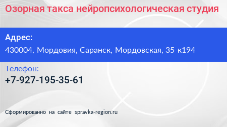 Озорная такса, нейропсихологическая студия по адресу 430004, Мордовия, Саранск, Мордовская, 35 к194 в дальнейшем Организация, размещена в следующих категориях: