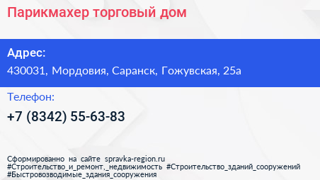 Парикмахер, торговый дом по адресу 430031, Мордовия, Саранск, Гожувская, 25а в дальнейшем Организация, размещена в следующих категориях: