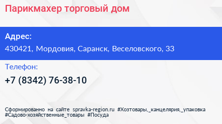 Парикмахер, торговый дом по адресу 430421, Мордовия, Саранск, Веселовского, 33 в дальнейшем Организация, размещена в следующих категориях: