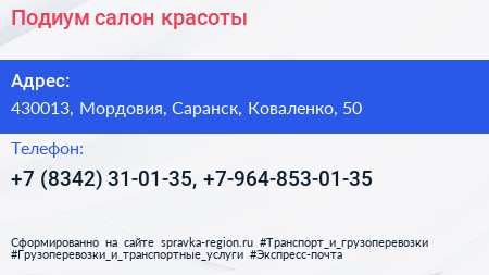 Подиум, салон красоты по адресу 430013, Мордовия, Саранск, Коваленко, 50 в дальнейшем Организация, размещена в следующих категориях: