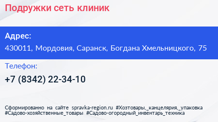 Подружки, сеть клиник по адресу 430011, Мордовия, Саранск, Богдана Хмельницкого, 75 в дальнейшем Организация, размещена в следующих категориях: