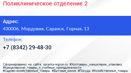 Поликлиническое отделение №2 по адресу 430006, Мордовия, Саранск, Горная, 13 в дальнейшем Организация, размещена в следующих категориях:
