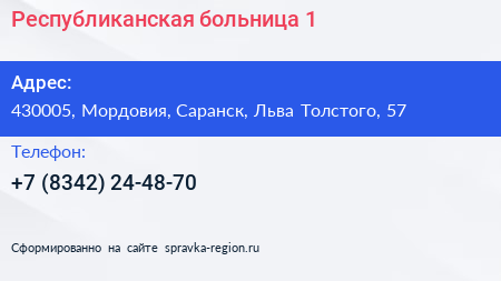 Республиканская больница №1 по адресу 430005, Мордовия, Саранск, Льва Толстого, 57 в дальнейшем Организация, размещена в следующих категориях: