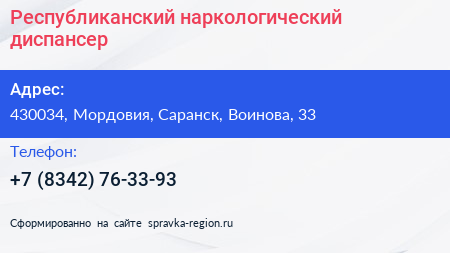 Республиканский наркологический диспансер по адресу 430034, Мордовия, Саранск, Воинова, 33 в дальнейшем Организация, размещена в следующих категориях:
