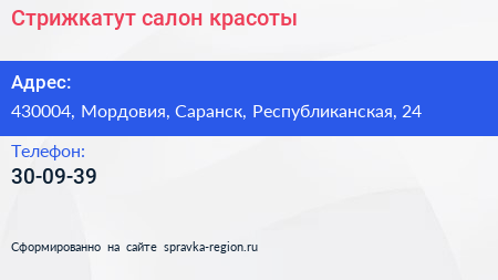 Стрижкатут, салон красоты по адресу 430004, Мордовия, Саранск, Республиканская, 24 в дальнейшем Организация, размещена в следующих категориях: