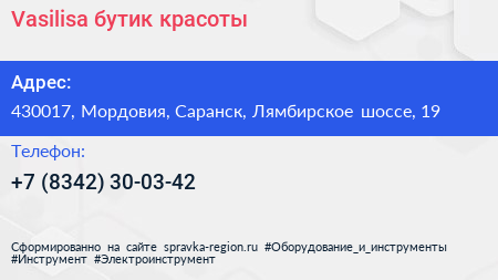 Vasilisa, бутик красоты по адресу 430017, Мордовия, Саранск, Лямбирское шоссе, 19 в дальнейшем Организация, размещена в следующих категориях: