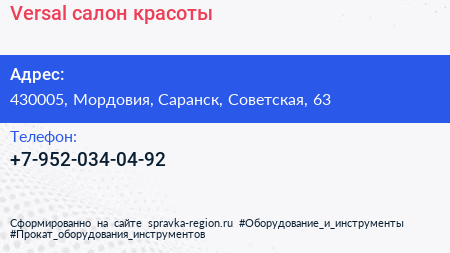 Versal, салон красоты по адресу 430005, Мордовия, Саранск, Советская, 63 в дальнейшем Организация, размещена в следующих категориях: