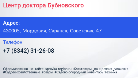 Центр доктора Бубновского по адресу 430005, Мордовия, Саранск, Советская, 47 в дальнейшем Организация, размещена в следующих категориях: