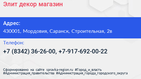 Элит декор, магазин по адресу 430001, Мордовия, Саранск, Строительная, 2в в дальнейшем Организация, размещена в следующих категориях: