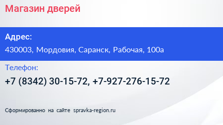 Магазин дверей по адресу 430003, Мордовия, Саранск, Рабочая, 100а в дальнейшем Организация, размещена в следующих категориях: