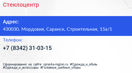 Стеклоцентр по адресу 430030, Мордовия, Саранск, Строительная, 15а/1 в дальнейшем Организация, размещена в следующих категориях: