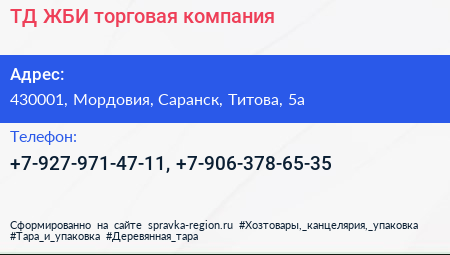 ТД ЖБИ, торговая компания по адресу 430001, Мордовия, Саранск, Титова, 5а в дальнейшем Организация, размещена в следующих категориях: