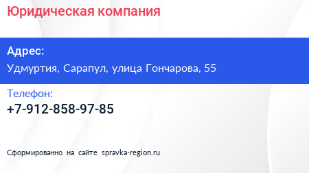 Юридическая компания по адресу Удмуртия, Сарапул, улица Гончарова, 55 в дальнейшем Организация, размещена в следующих категориях: