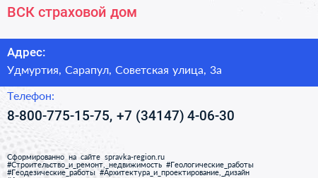 ВСК, страховой дом по адресу Удмуртия, Сарапул, Советская улица, 3а в дальнейшем Организация, размещена в следующих категориях: