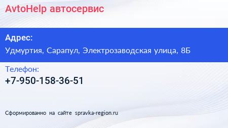 AvtoHelp, автосервис по адресу Удмуртия, Сарапул, Электрозаводская улица, 8Б в дальнейшем Организация, размещена в следующих категориях: