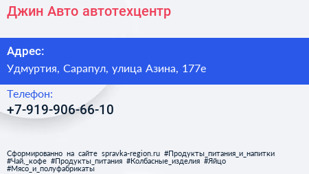Джин-Авто, автотехцентр по адресу Удмуртия, Сарапул, улица Азина, 177е в дальнейшем Организация, размещена в следующих категориях: