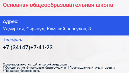Основная общеообразовательная школа по адресу Удмуртия, Сарапул, Камский переулок, 3 в дальнейшем Организация, размещена в следующих категориях: