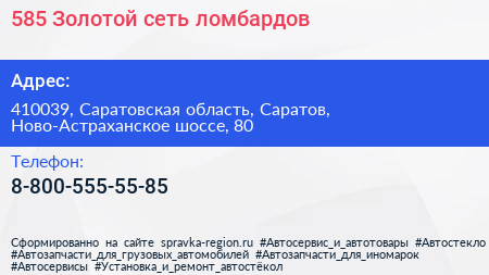 585*Золотой, сеть ломбардов по адресу 410039, Саратовская область, Саратов, Ново-Астраханское шоссе, 80 в дальнейшем Организация, размещена в следующих категориях: