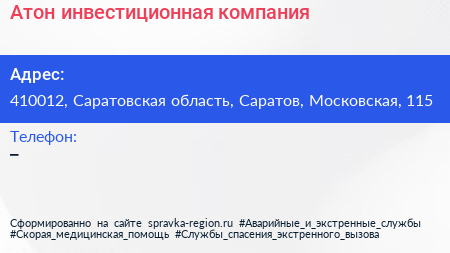 Атон, инвестиционная компания по адресу 410012, Саратовская область, Саратов, Московская, 115 в дальнейшем Организация, размещена в следующих категориях: