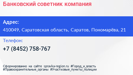 Банковский советник, компания по адресу 410049, Саратовская область, Саратов, Пономарёва, 21 в дальнейшем Организация, размещена в следующих категориях:
