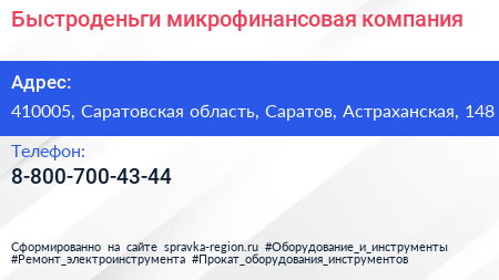 Быстроденьги, микрофинансовая компания по адресу 410005, Саратовская область, Саратов, Астраханская, 148 в дальнейшем Организация, размещена в следующих категориях: